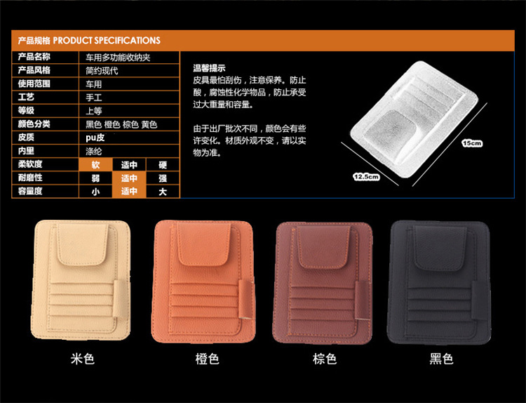 車用遮陽板多功能收納夾