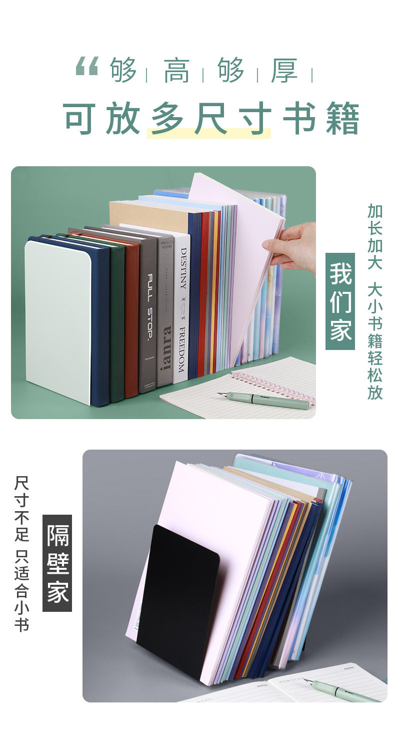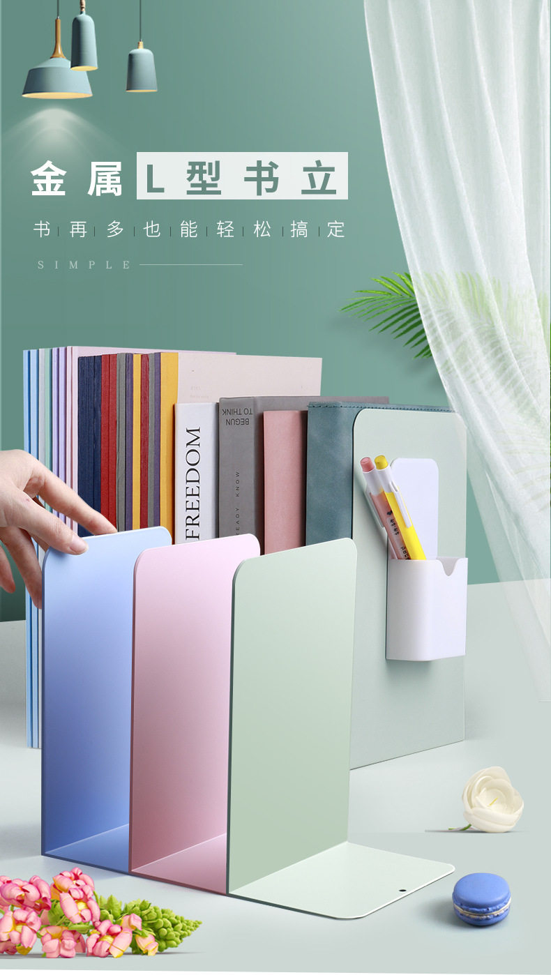 思進金屬書立批發 L型大號書檔學生用桌面簡約書架書擋板分 隔架