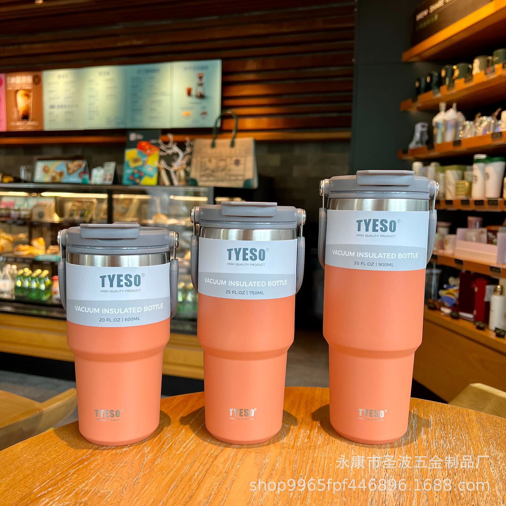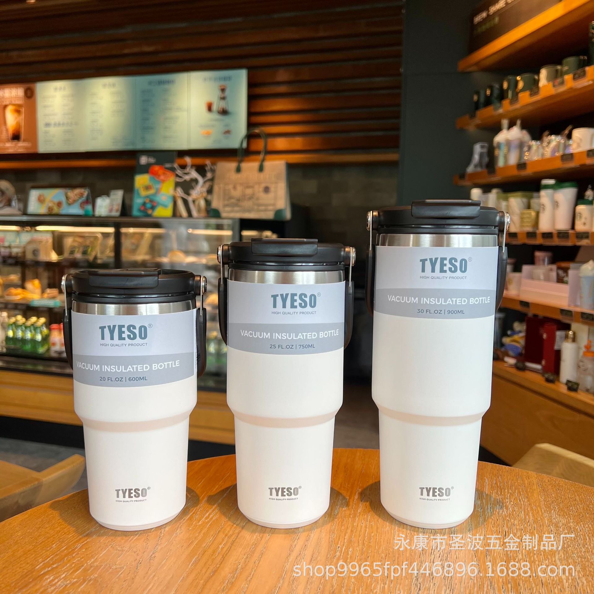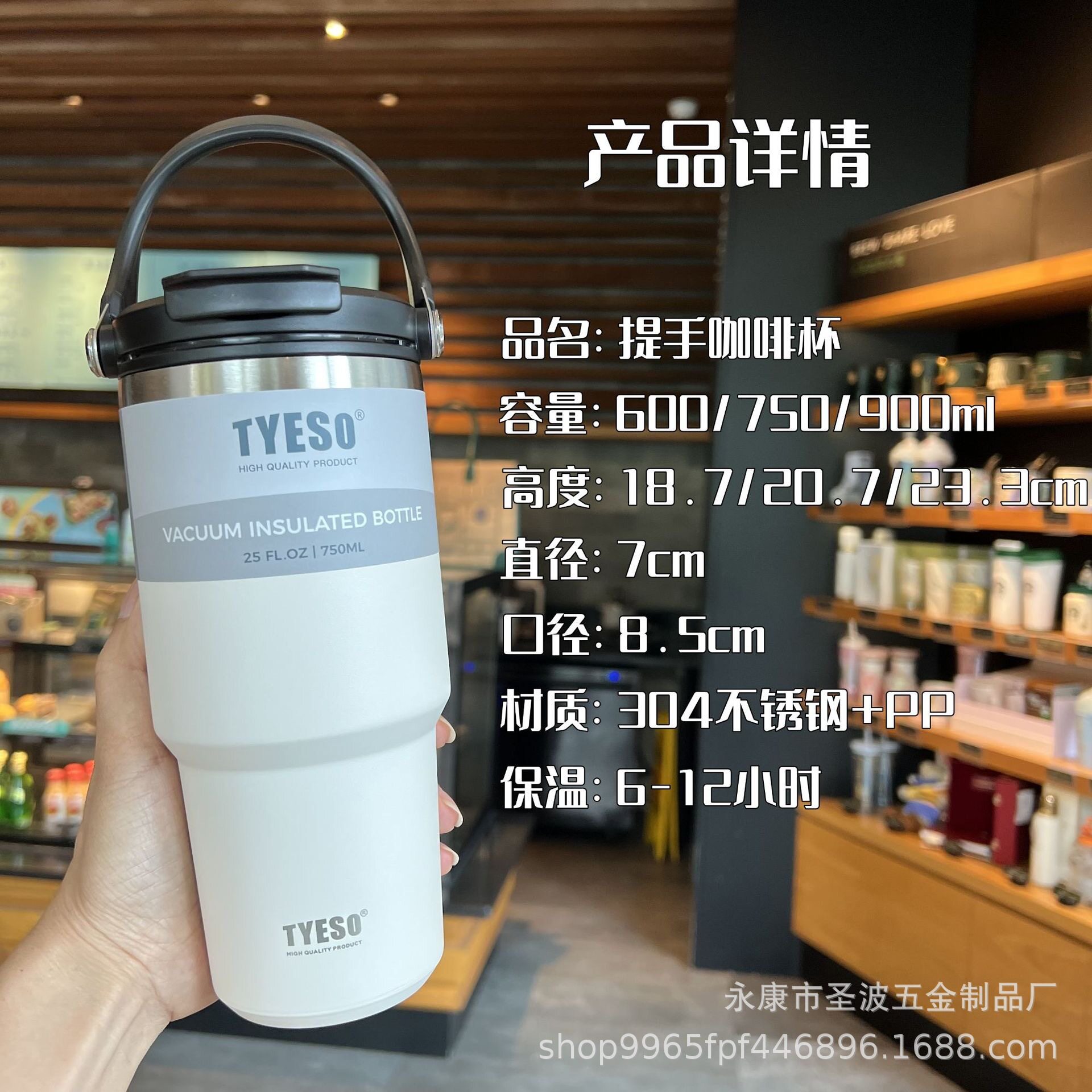 車載隨手翻蓋咖啡杯戶外提手杯大容量304不銹鋼帶吸管保溫杯
