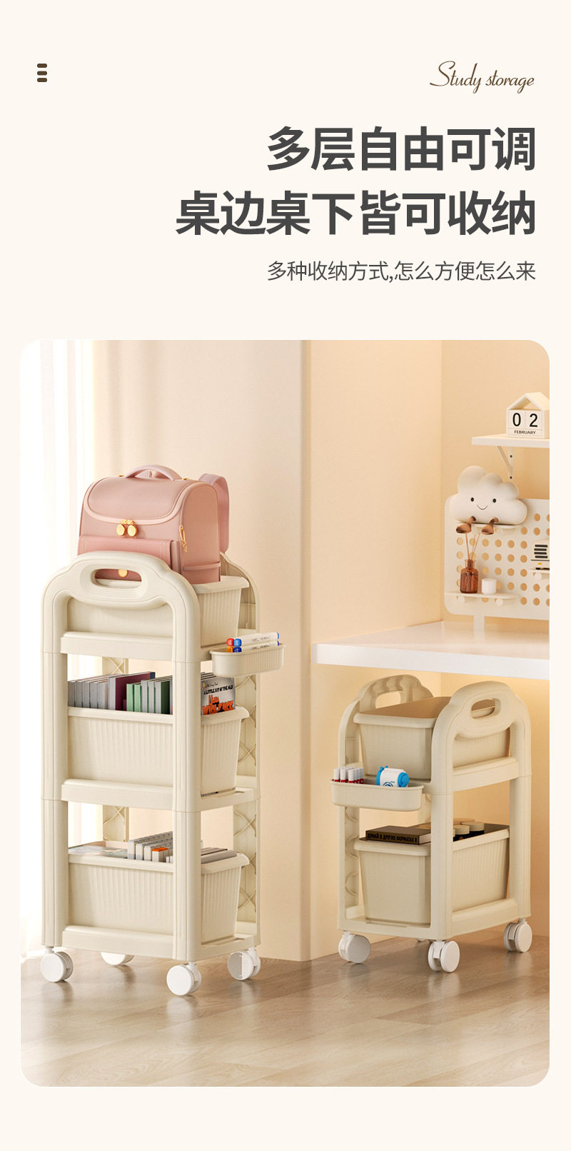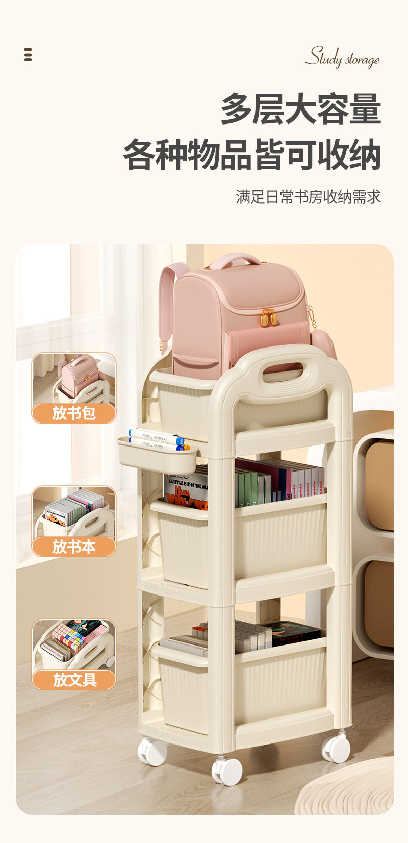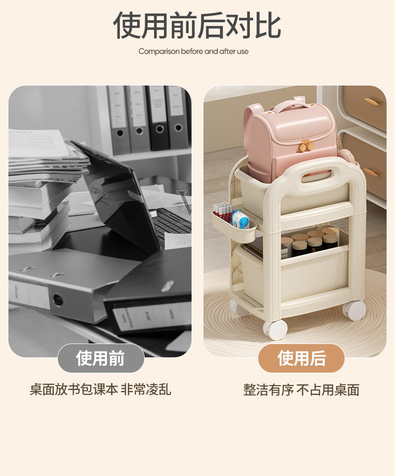 包包置物架 學生書包置物架可移動桌下書本收納架家用宿舍臥室多層收納架書架 推車置物架 推車書包置物架 可推書包置物架 2層書包置物架 二層書包置物架