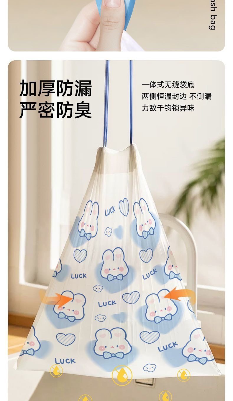 抽繩垃圾袋大號加厚家用一次性手提式自動收口彩色拉繩束口塑料袋 抽繩束口垃圾袋 拉繩垃圾袋
